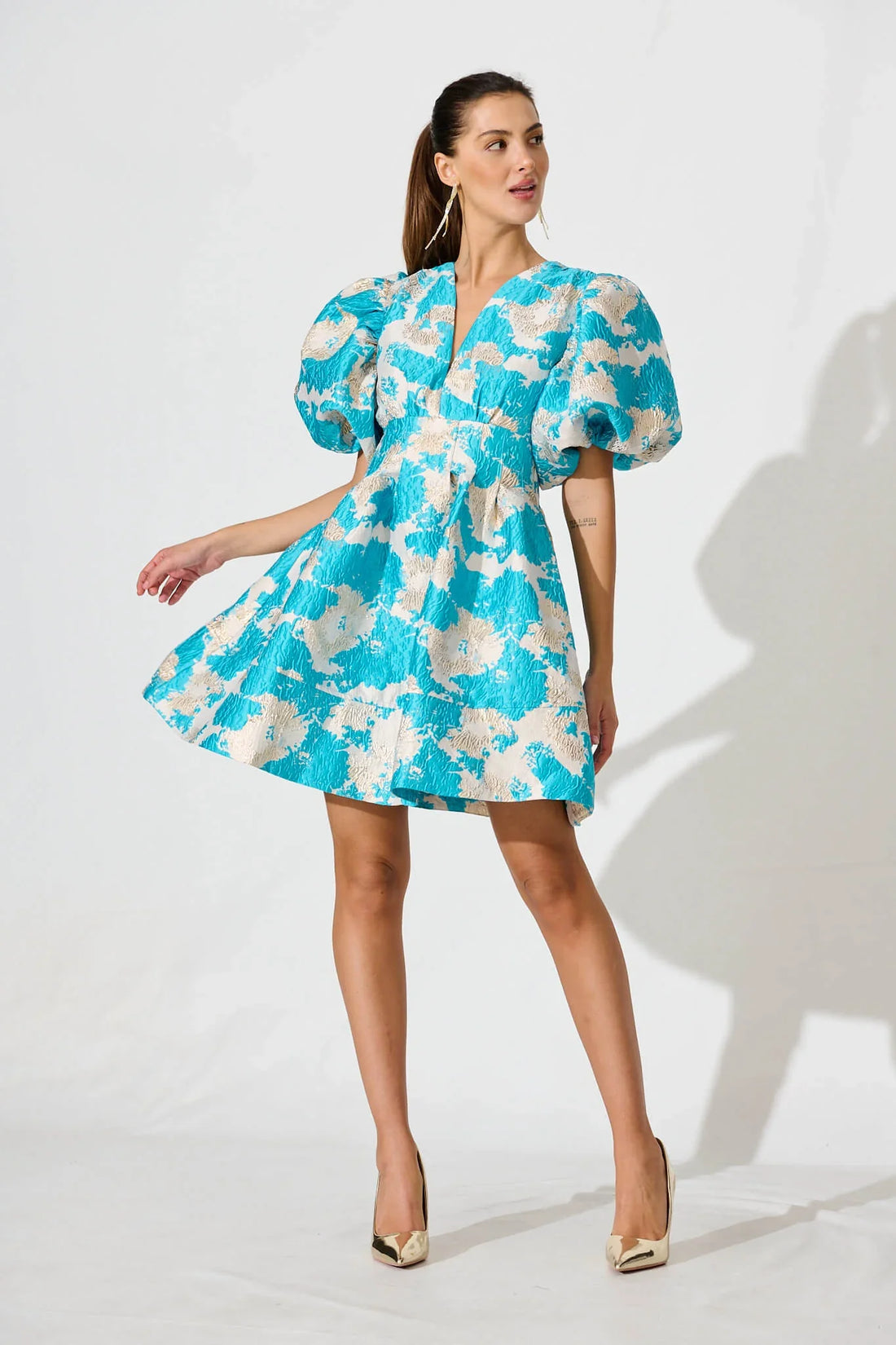 Paris Dream Dress – Gold Aqua Jacquard